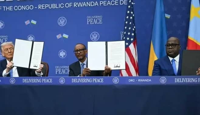 Le jeudi 4 décembre 2025 à Washington, un accord de paix a été signé entre la République démocratique du Congo, le Rwanda et les États-Unis. Les présidents Félix Tshisekedi, Paul Kagame et Donald Trump ont paraphé ce texte, malgré la poursuite des combats sur le terrain entre les forces congolaises et les groupes armés actifs à l’est de la RDC.